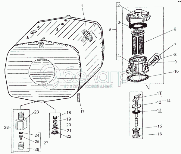 Каталог запасных частей к технике: МЗКТ-74296. Бак топливный передний 74296-1101008
