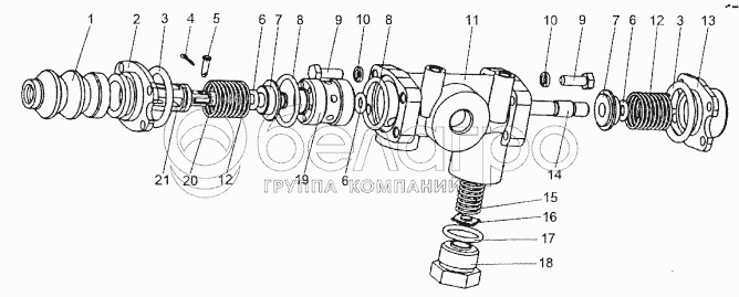 Каталог запасных частей к технике: МЗКТ-74296. Кран накачки шин 543-4222010-21