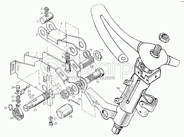 Каталог запасных частей к технике: МЗКТ-74296. Кронштейн с колонкой 64221-3403008