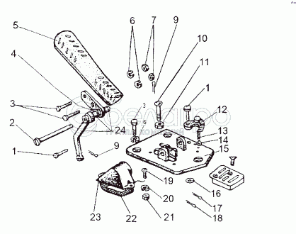 Каталог запасных частей к технике: МЗКТ-74296. Педаль с кронштейном 74296-1108005