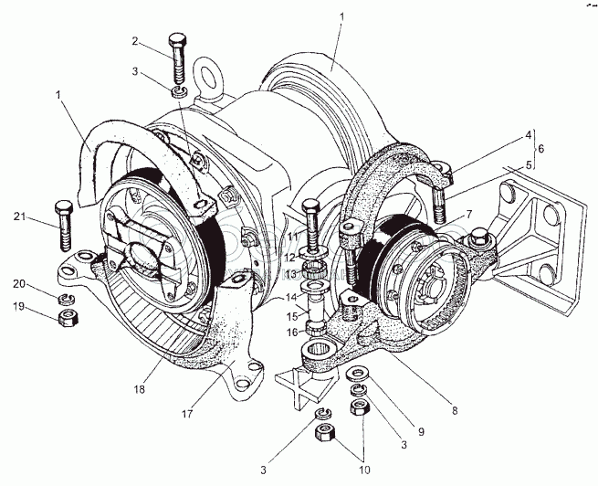 Каталог запасных частей к технике: МЗКТ-74296. Подвеска редуктора моста 7930-2301025