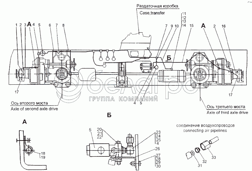 Каталог запасных частей к технике: МЗКТ-74296. Привод управления блокировкой дифференциалов