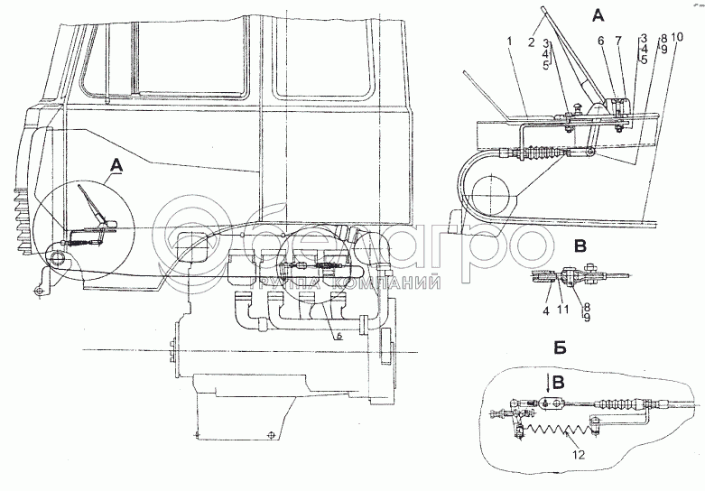 Каталог запасных частей к технике: МЗКТ-74296. Привод управления подачей топлива