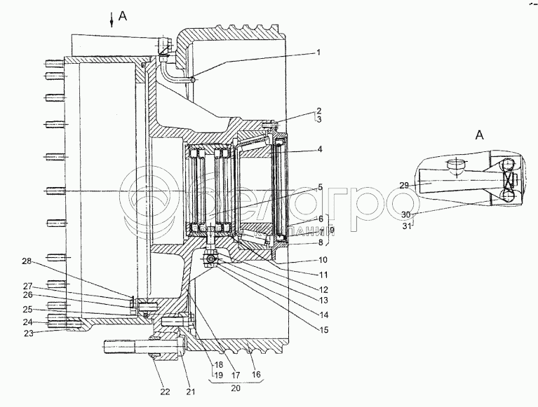 Каталог запасных частей к технике: МЗКТ-74296. Ступица с горловиной 74295-3103008