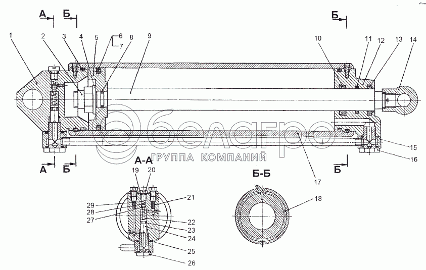 Каталог запасных частей к технике: МЗКТ-74296. Цилиндр гидравлический 79092-5003010-10