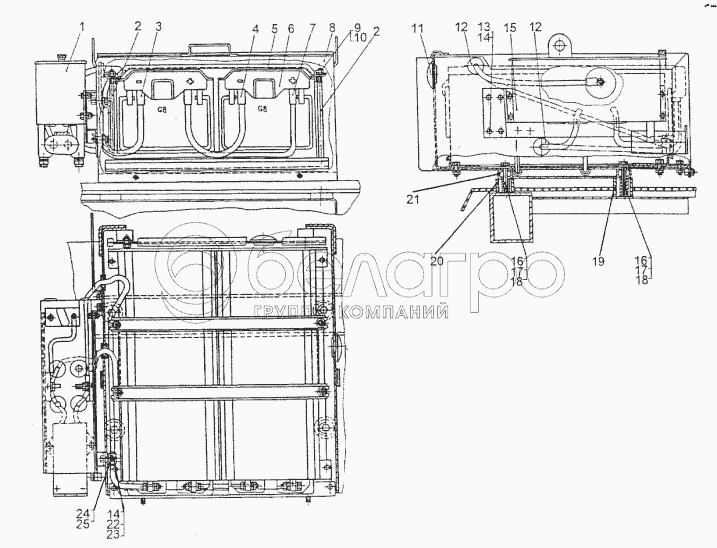 Каталог запасных частей к технике: МЗКТ-74296. Установка аккумуляторных батарей и контейнера