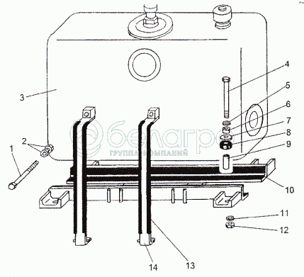 Каталог запасных частей к технике: МЗКТ-74296. Установка бака