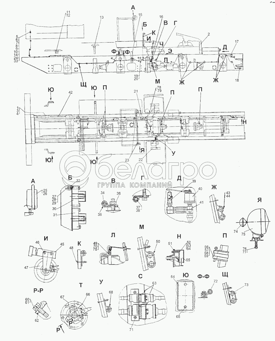 Каталог запасных частей к технике: МЗКТ-74296. Установка электрооборудования на шасси