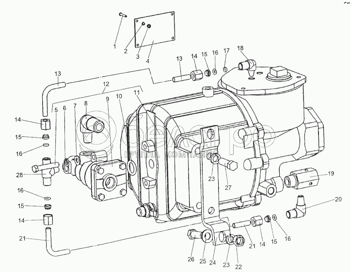 Каталог запасных частей к технике: МЗКТ-74296. Установка главного тормозного цилиндра