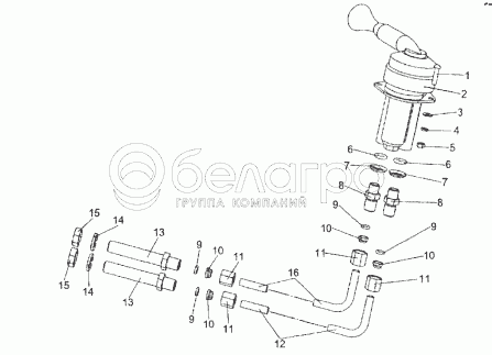 Каталог запасных частей к технике: МЗКТ-74296. Установка крана стояночного тормоза