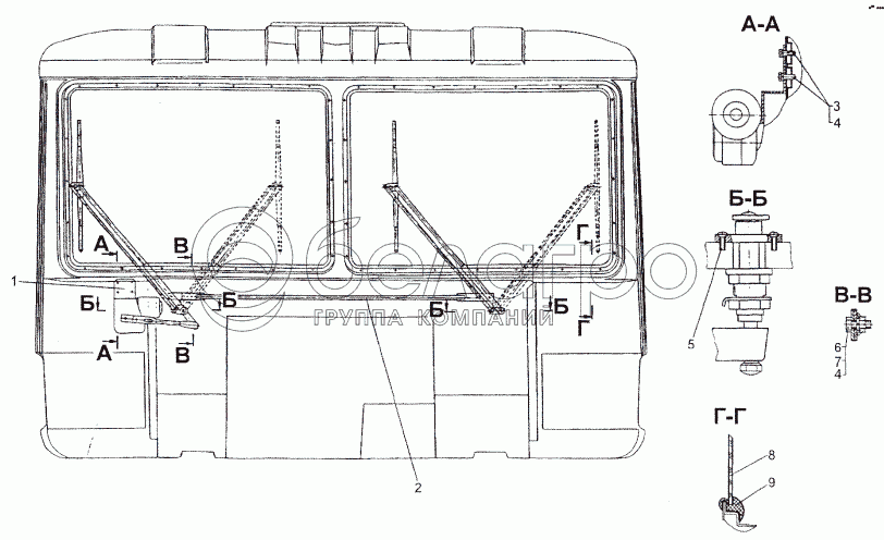 Каталог запасных частей к технике: МЗКТ-74296. Установка ветровых окон и стеклоочистителя
