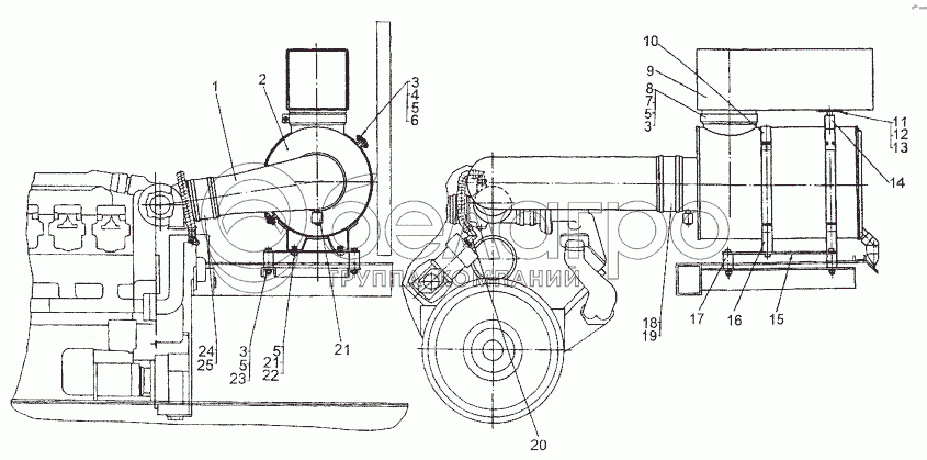 Каталог запасных частей к технике: МЗКТ-74296. Установка воздухоочистителя