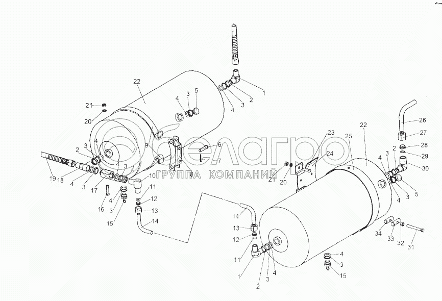 Каталог запасных частей к технике: МЗКТ-74296. Установка воздушных баллонов
