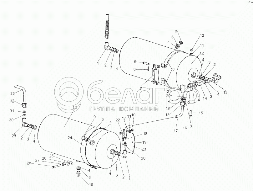 Каталог запасных частей к технике: МЗКТ-74296. Установка воздушных баллонов