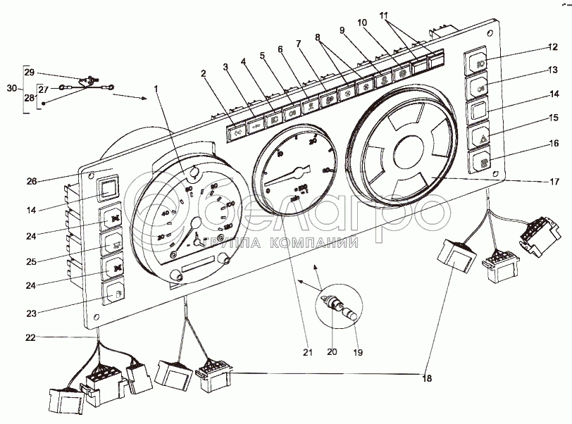 Каталог запасных частей к технике: МЗКТ-7429. Панель приборов двигателя 79092-3800001