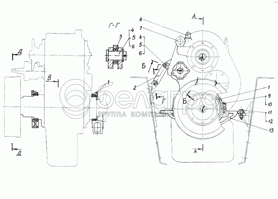 Каталог запасных частей к технике: МЗКТ-7429. Подвеска раздаточной коробки