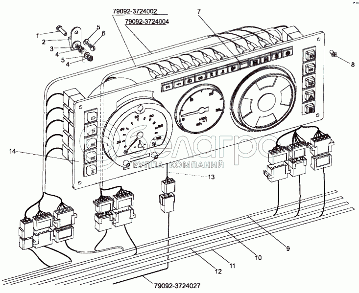 Каталог запасных частей к технике: МЗКТ-7429. Установка панели приборов двигателя