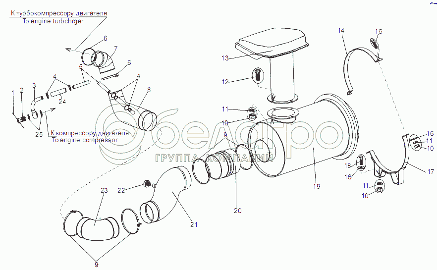 Каталог запасных частей к технике: МЗКТ-7429. Установка воздухоочистителя