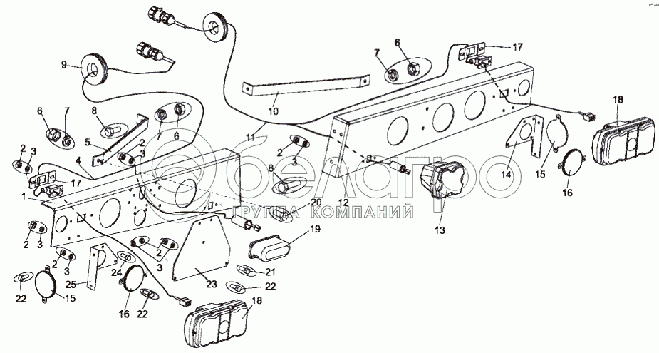 Каталог запасных частей к технике: МЗКТ-7429. Установка задних фонарей