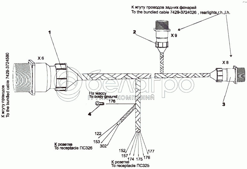 Каталог запасных частей к технике: МЗКТ-7429. Жгут проводов 7429-3724588