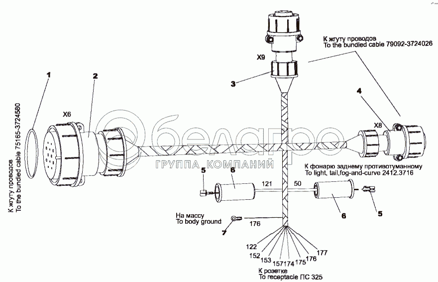 Каталог запасных частей к технике: МЗКТ-7429. Жгут проводов 75165-3724588