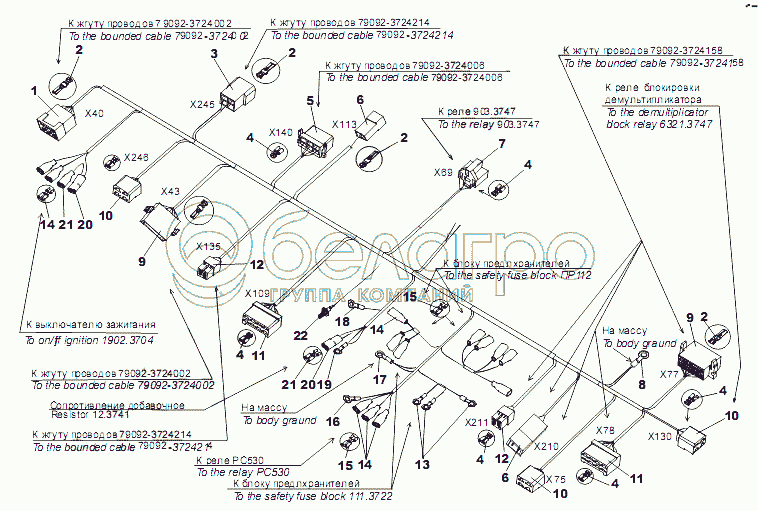 Каталог запасных частей к технике: МЗКТ-751652. Жгут проводов N4 в кабине