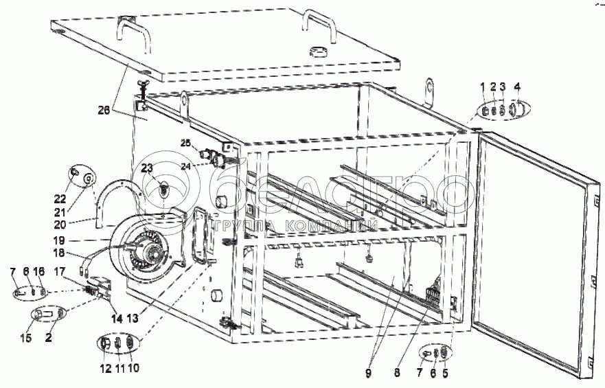 Каталог запасных частей к технике: МЗКТ-75165. Аккумуляторный контейнер 74131-3748002