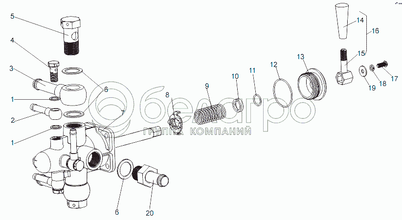 Каталог запасных частей к технике: МЗКТ-75165. Кран топливораспределительный 79092-1116010-10