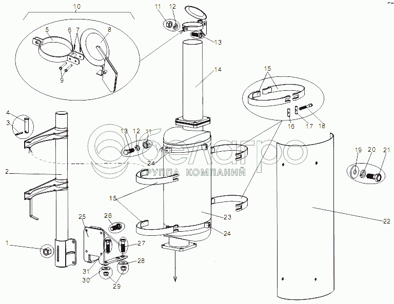 Каталог запасных частей к технике: МЗКТ-75165. Крепление глушителя