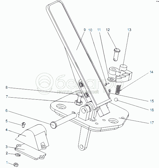Каталог запасных частей к технике: МЗКТ-75165. Педаль с кронштейном 74133-1108005