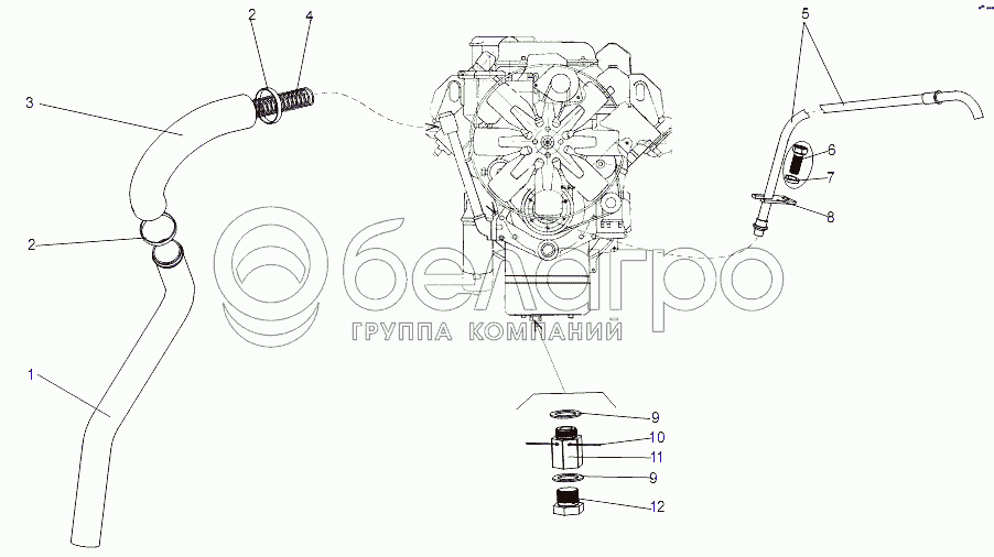Каталог запасных частей к технике: МЗКТ-75165. Установка агрегатов системы смазки двигателя