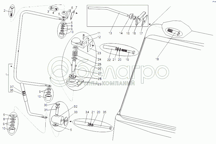 Каталог запасных частей к технике: МЗКТ-75165. Установка держателей зеркал