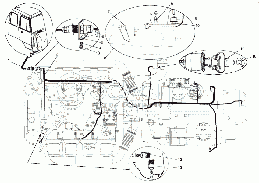 Каталог запасных частей к технике: МЗКТ-75165. Установка электрооборудования на двигателе