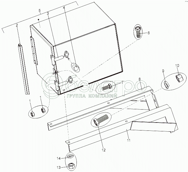 Каталог запасных частей к технике: МЗКТ-75165. Установка инструментального ящика