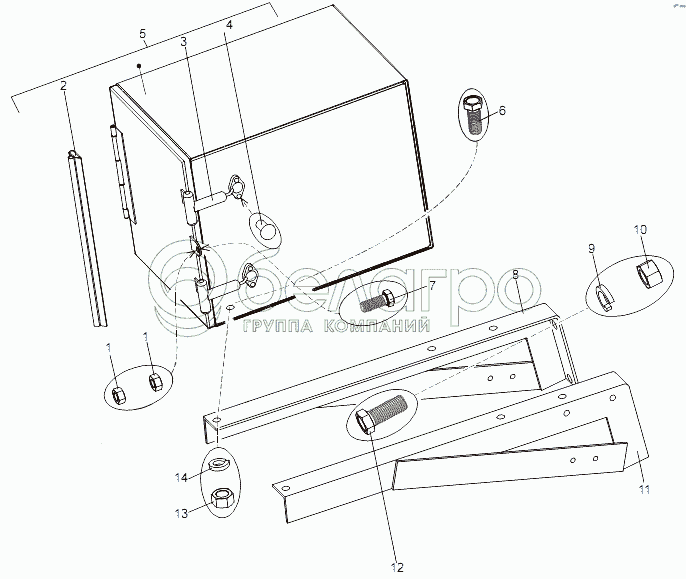 Каталог запасных частей к технике: МЗКТ-75165. Установка инструментального ящика