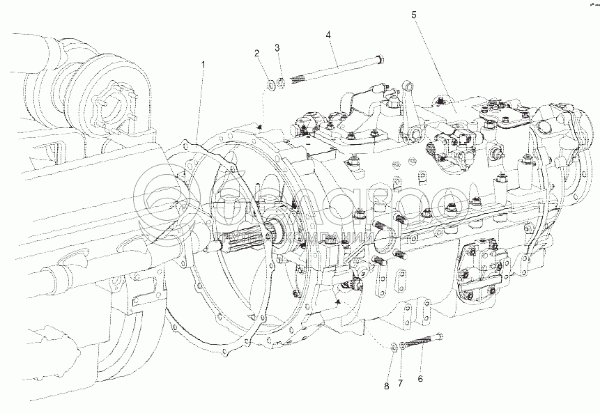 Каталог запасных частей к технике: МЗКТ-75165. Установка коробки передач