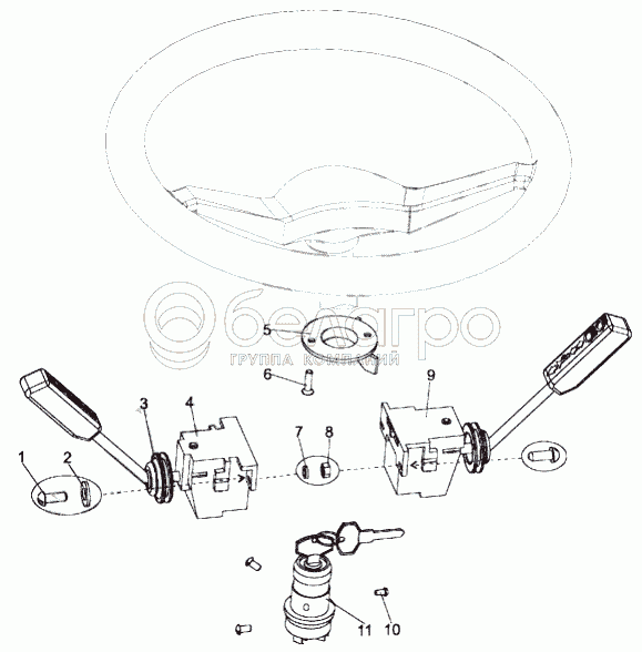 Каталог запасных частей к технике: МЗКТ-75165. Установка переключателей на рулевой колонке