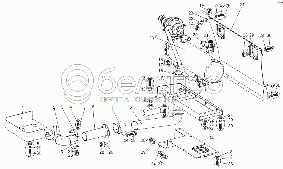 Каталог запасных частей к технике: МЗКТ-75165. Установка подогревателя и выхлопных труб