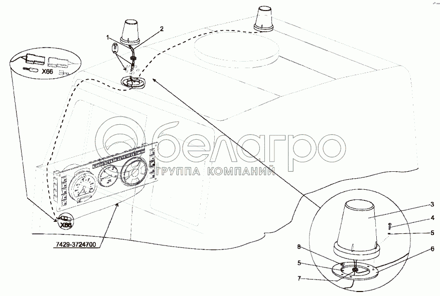 Каталог запасных частей к технике: МЗКТ-75165. Установка сигнальных маяков