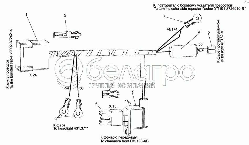 Каталог запасных частей к технике: МЗКТ-75165. Жгут проводов 79092-3724033