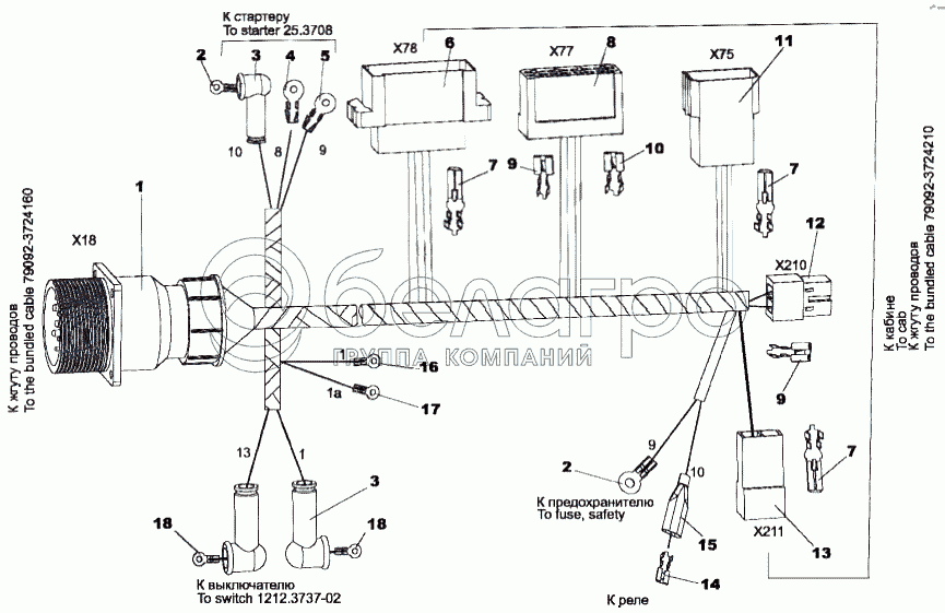 Каталог запасных частей к технике: МЗКТ-75165. Жгут проводов 79092-3724158