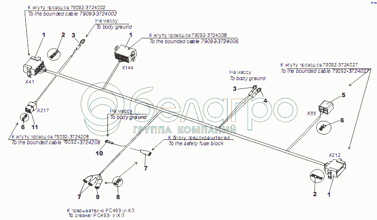 Каталог запасных частей к технике: МЗКТ-75165. Жгут проводов N2 в кабине 79092-3724206