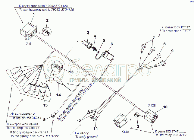 Каталог запасных частей к технике: МЗКТ-75165. Жгут проводов подогревателя 9092-3724262-10