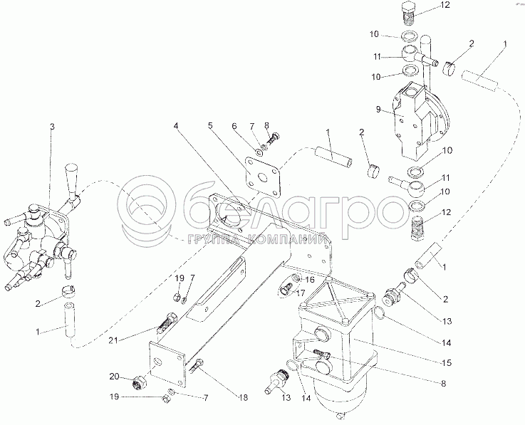 Каталог запасных частей к технике: МЗКТ-79011. Установка агрегатов топливной системы