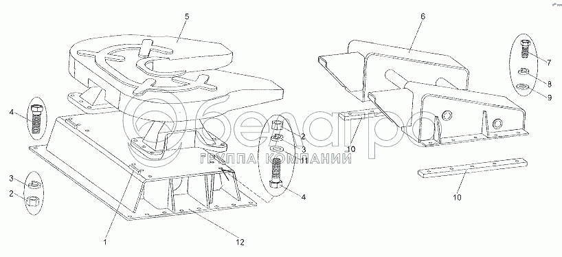 Каталог запасных частей к технике: МЗКТ-79011. Установка седельного устройства