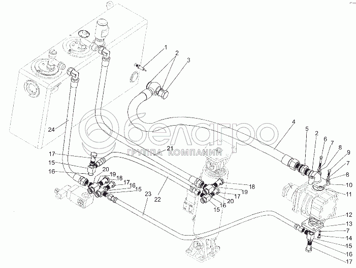 Каталог запасных частей к технике: МЗКТ-79011. Установка трубопроводов