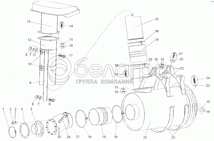 Каталог запасных частей к технике: МЗКТ-79011. Установка воздухоочистителя
