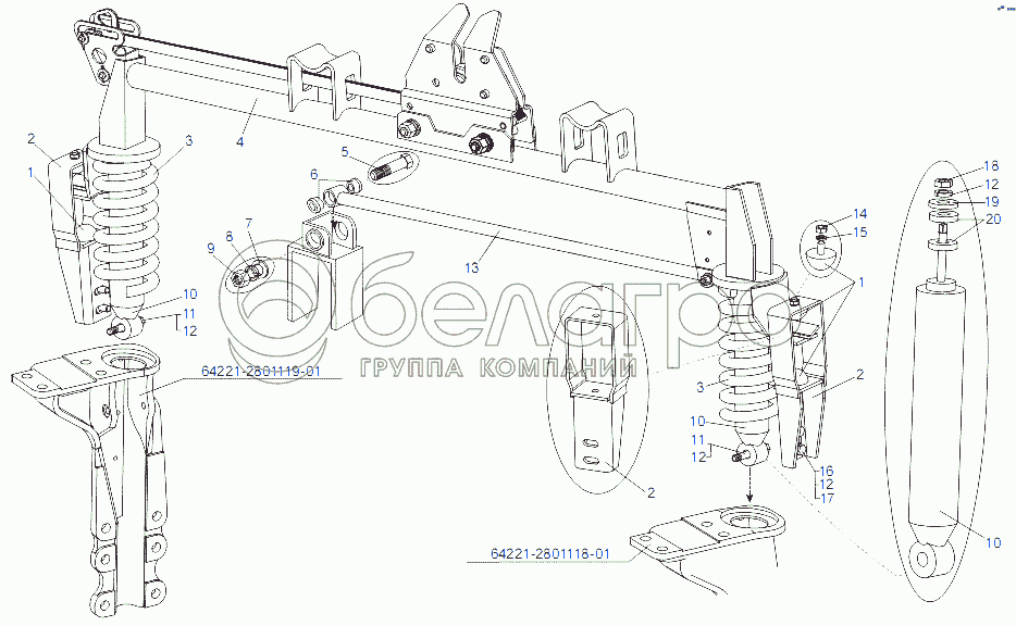 Каталог запасных частей к технике: МЗКТ-79091. Подрессоривание кабины заднее