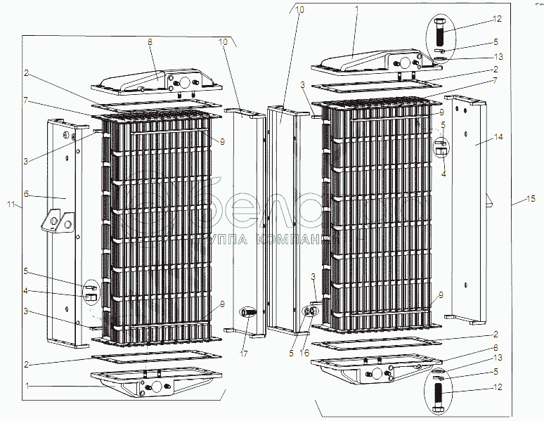 Каталог запасных частей к технике: МЗКТ-79091. Радиатор 79092-1301008