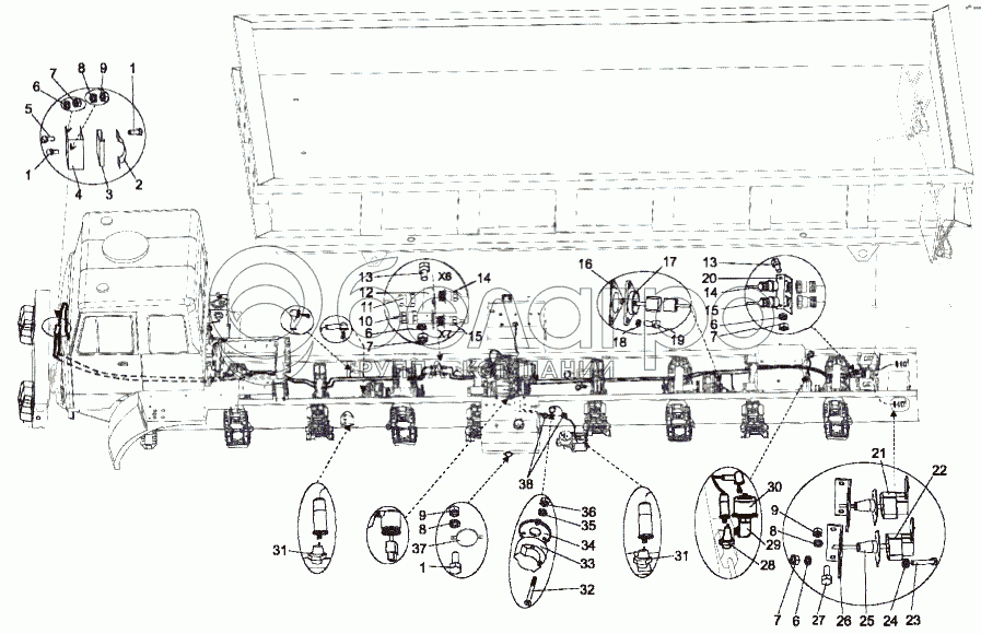 Каталог запасных частей к технике: МЗКТ-79091. Установка электрооборудования на шасси